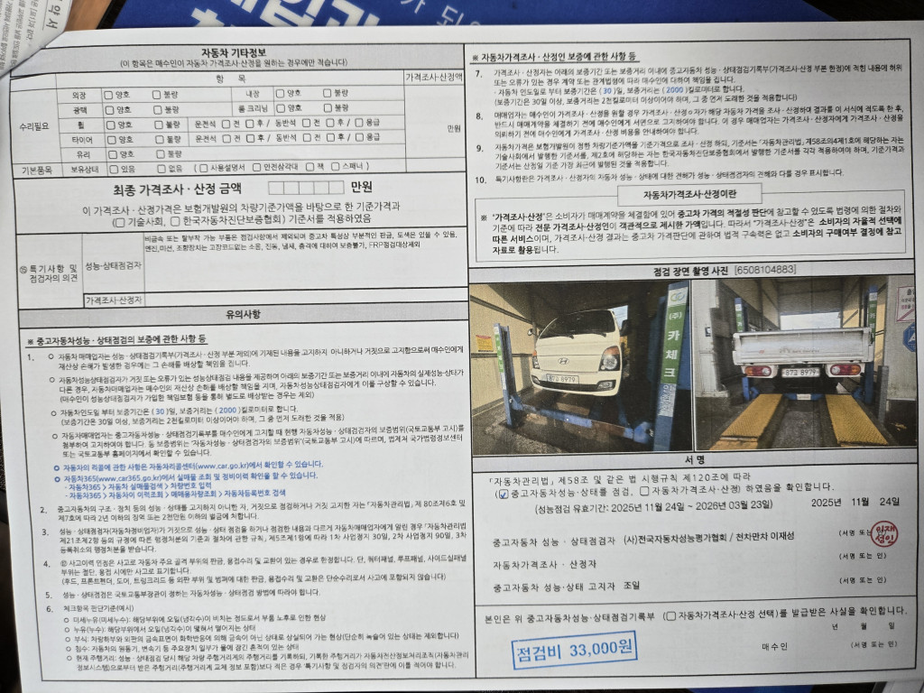 | 기타 | 성능점검기관별 성능점검 서비스차별화를 위하여 보증항목을 추가할 수 있음 | ||